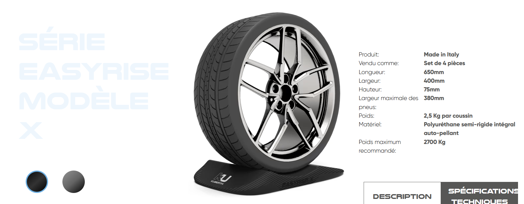 Elevate Your Car Care with Easyrise X Shield your sports or hypercar's tyres against flat spots with the Easyrise X, a cutting-edge polyurethane cushion designed for optimal weight distribution and tyre preservation. Tailored to enhance your vehicle’s performance, this cushion ensures your tyres maintain their shape, reducing the risk of flat spots and cracking, even during extended periods of inactivity. Thanks to the polyurethane composition, the cushion thermally insulates the tyres from contact with the ground.