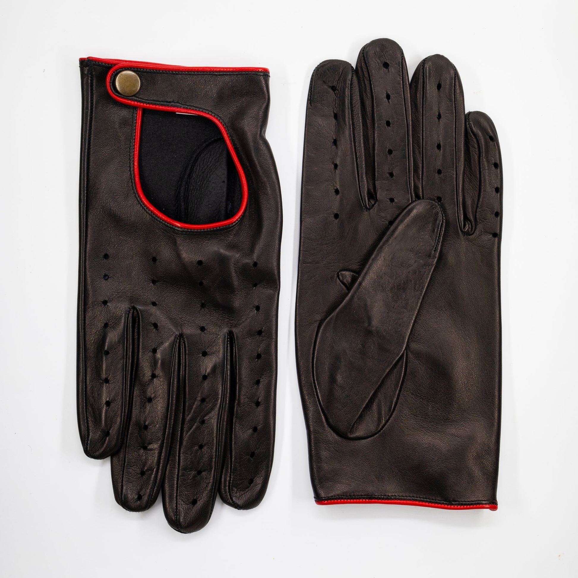 Man Lambskin Gloves - Unlined - Driving Style - Contrast Piping